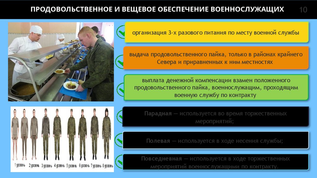 ПРОДОВОЛЬСТВЕННОЕ И ВЕЩЕВОЕ ОБЕСПЕЧЕНИЕ ВОЕННОСЛУЖАЩИХ10