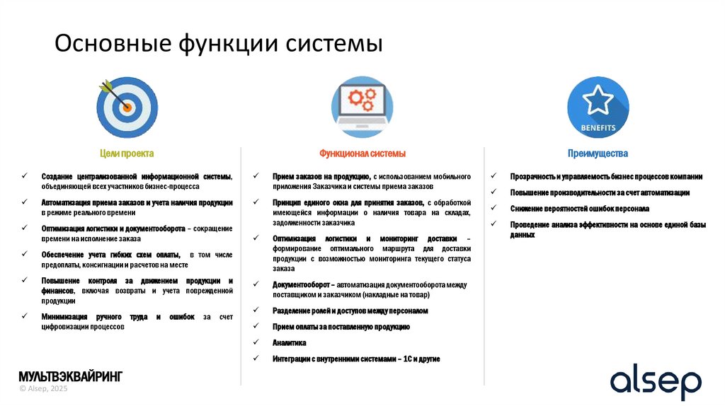 • Подключение систем автоматизации бизнеса от партнеров Alsep;