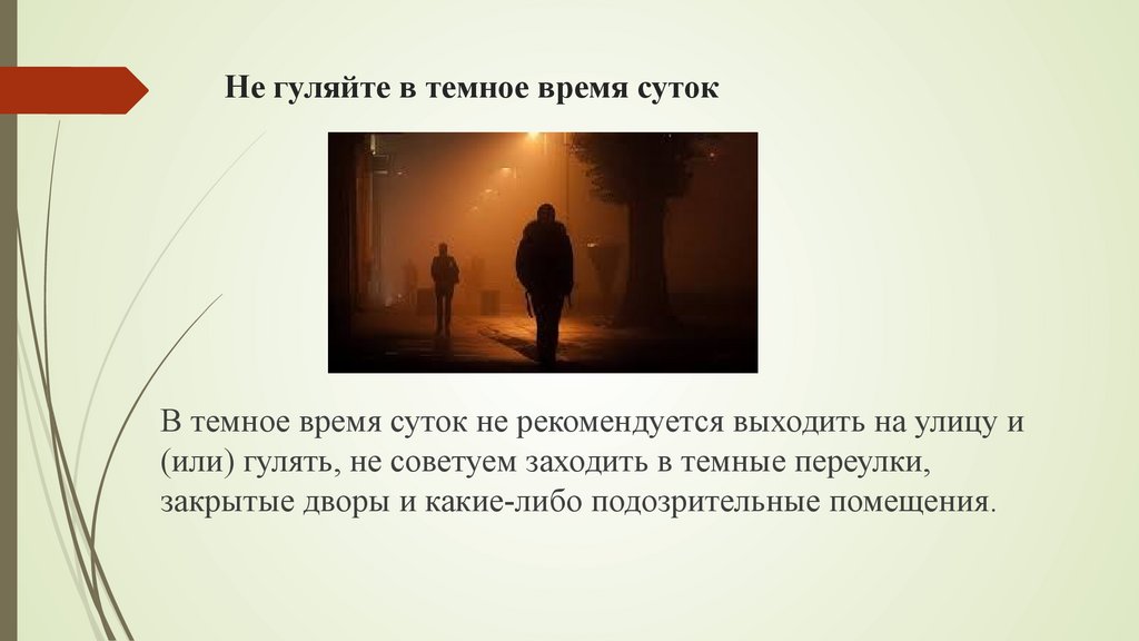 Не гуляйте в темное время сутокВ темное время суток не рекомендуется выходить на улицу и