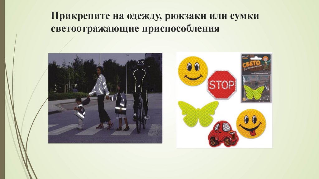 Прикрепите на одежду, рюкзаки или сумкисветоотражающие приспособления