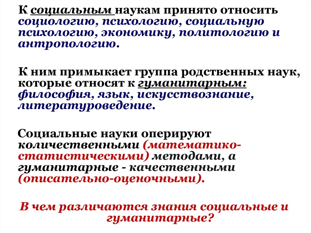 К социальным наукам принято относитьсоциологию, психологию, социальную