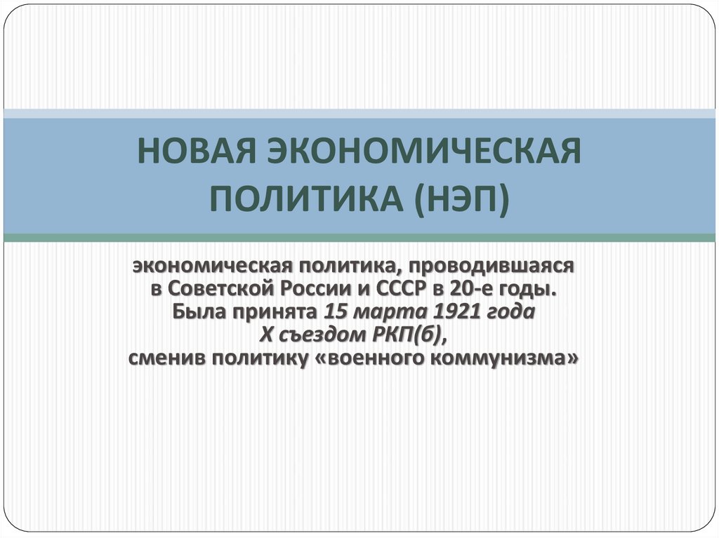1. НОВАЯ ЭКОНОМИЧЕСКАЯ ПОЛИТИКА (НЭП)