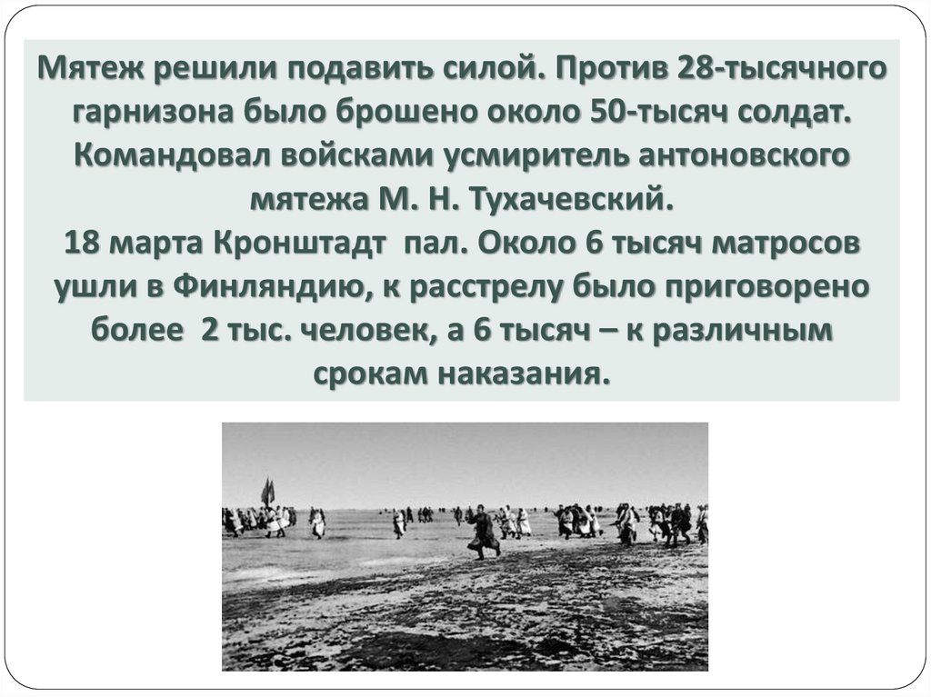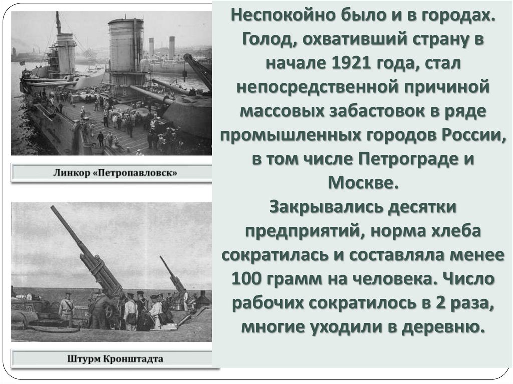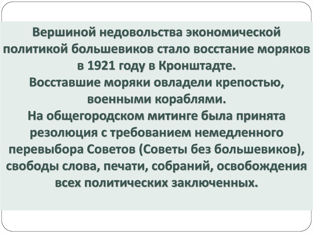 Вершиной недовольства экономическойполитикой большевиков стало восстание моряков