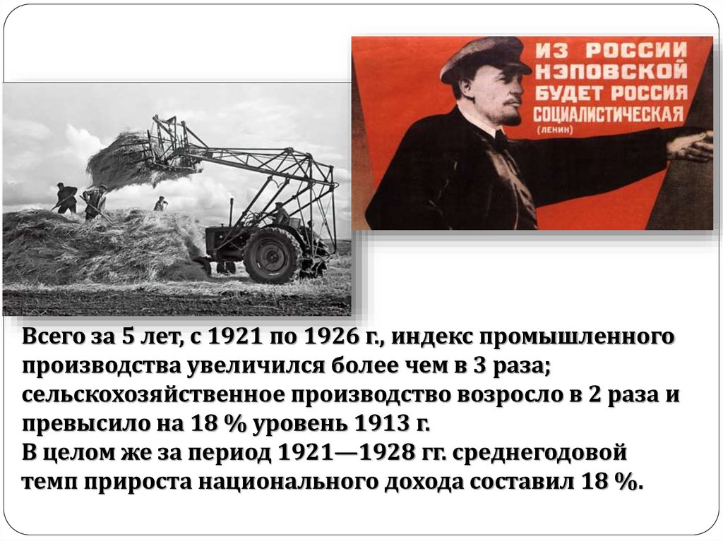 Всего за 5 лет, с 1921 по 1926 г., индекс промышленногопроизводства увеличился более чем в 3 раза;