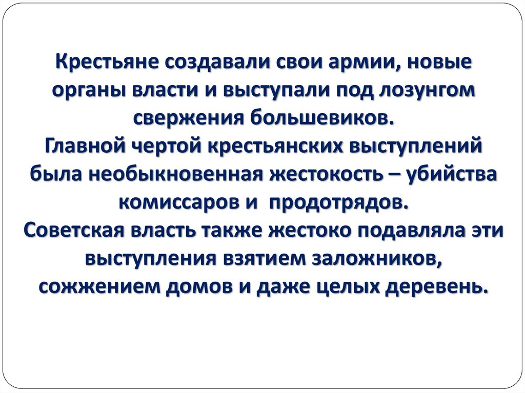 Крестьяне создавали свои армии, новыеорганы власти и выступали под лозунгом