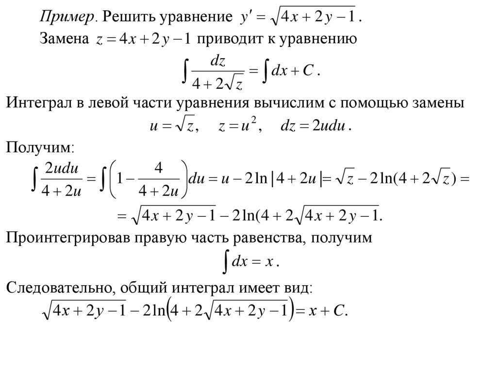 Пример. Решить уравнение y 4 x 2 y 1 .Замена z 4 x 2 y 1 приводит к уравнению