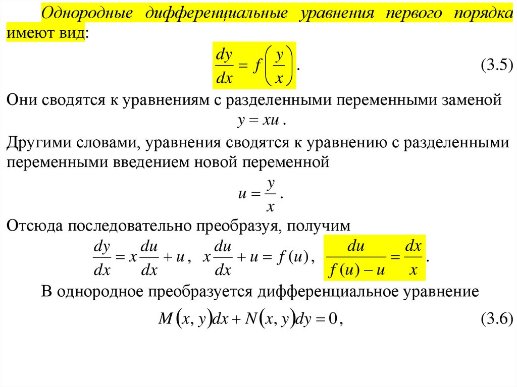 Однородные дифференциальные уравнения первого порядкаимеют вид: