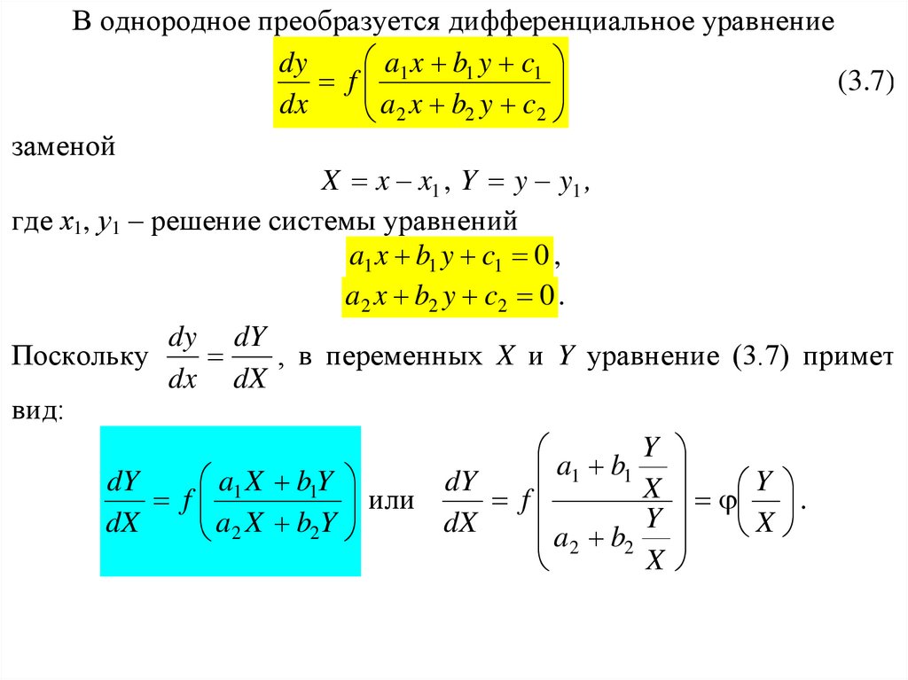 В однородное преобразуется дифференциальное уравнениеa1 x b1 y c1