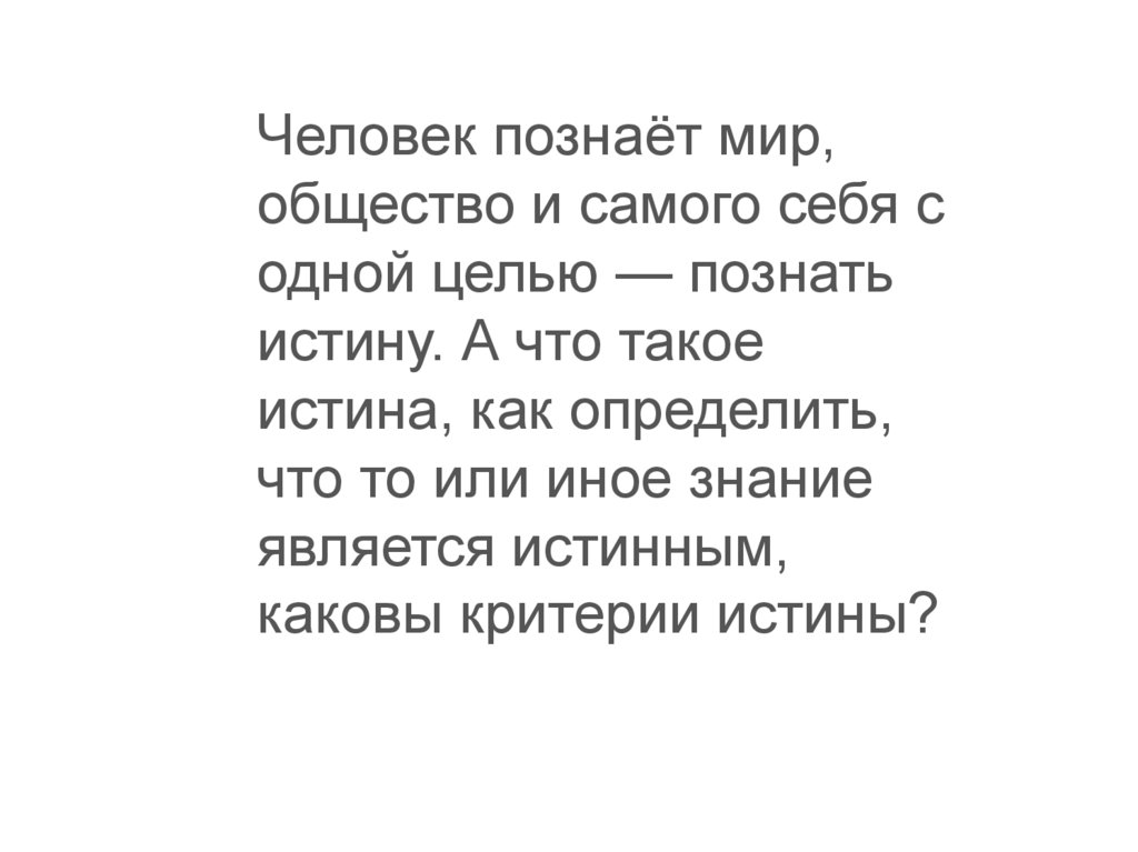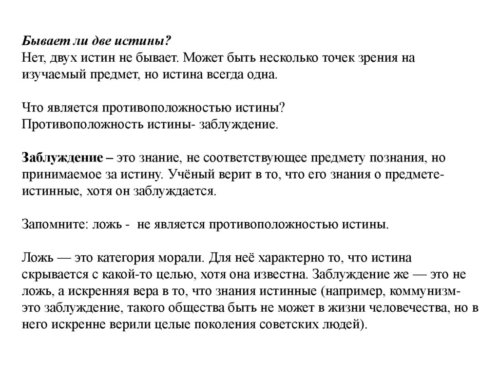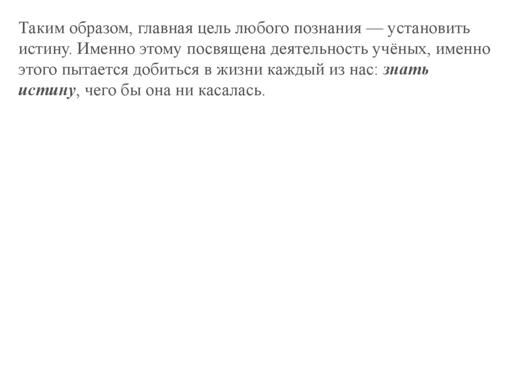 Таким образом, главная цель любого познания — установитьистину. Именно этому посвящена деятельность учёных, именно