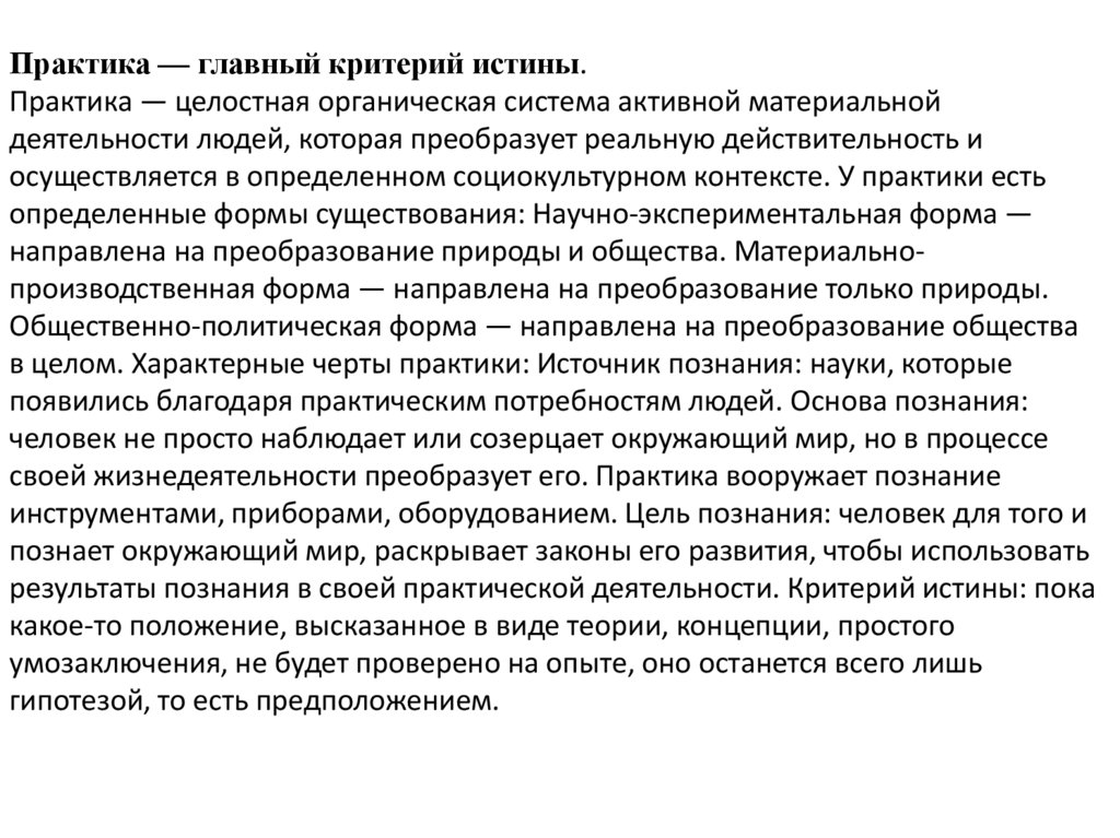 Практика — главный критерий истины.Практика — целостная органическая система активной материальной