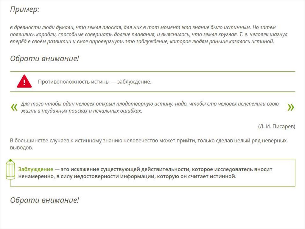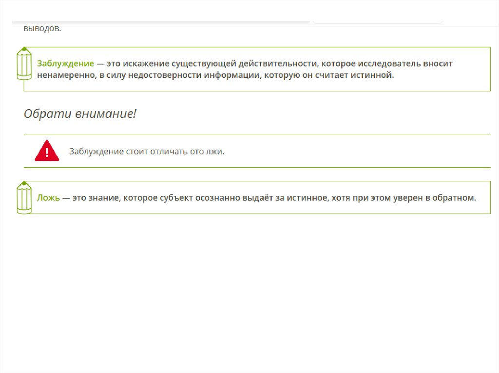 Заблуждение – это знание, не соответствующее предмету познания, но