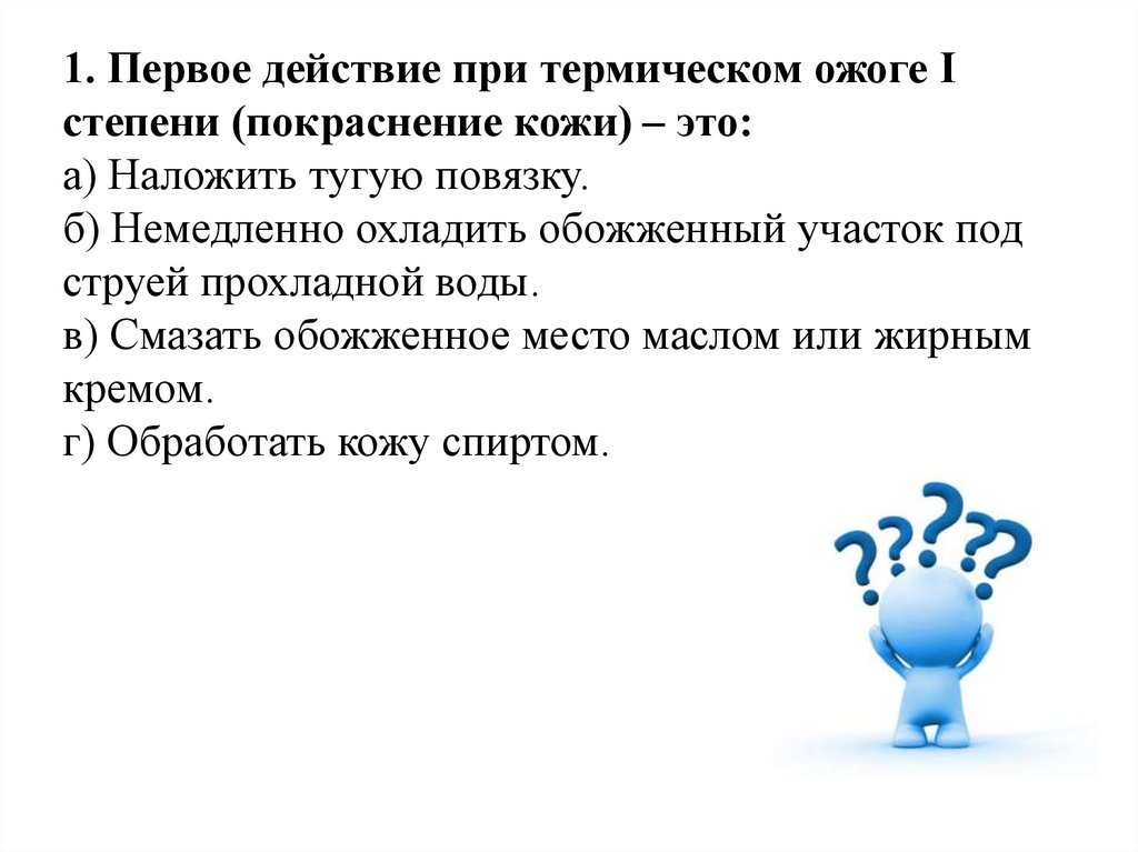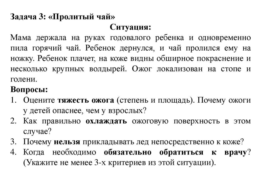 1. Оцените тяжесть ожога (степень и площадь). Почему ожоги