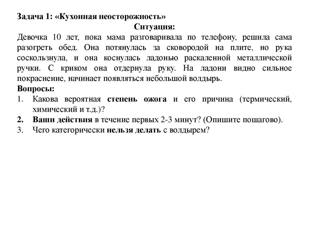 Задача 1: «Кухонная неосторожность»Ситуация: