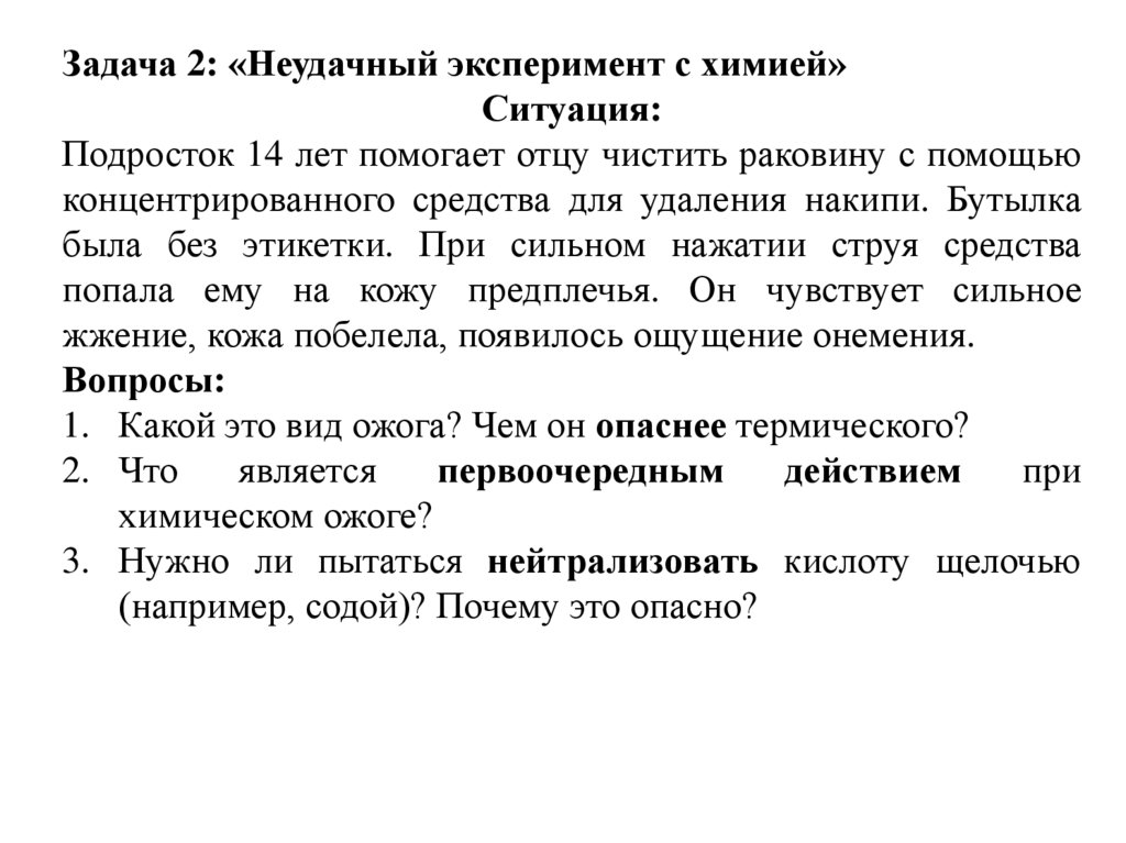 Задача 2: «Неудачный эксперимент с химией»Ситуация: