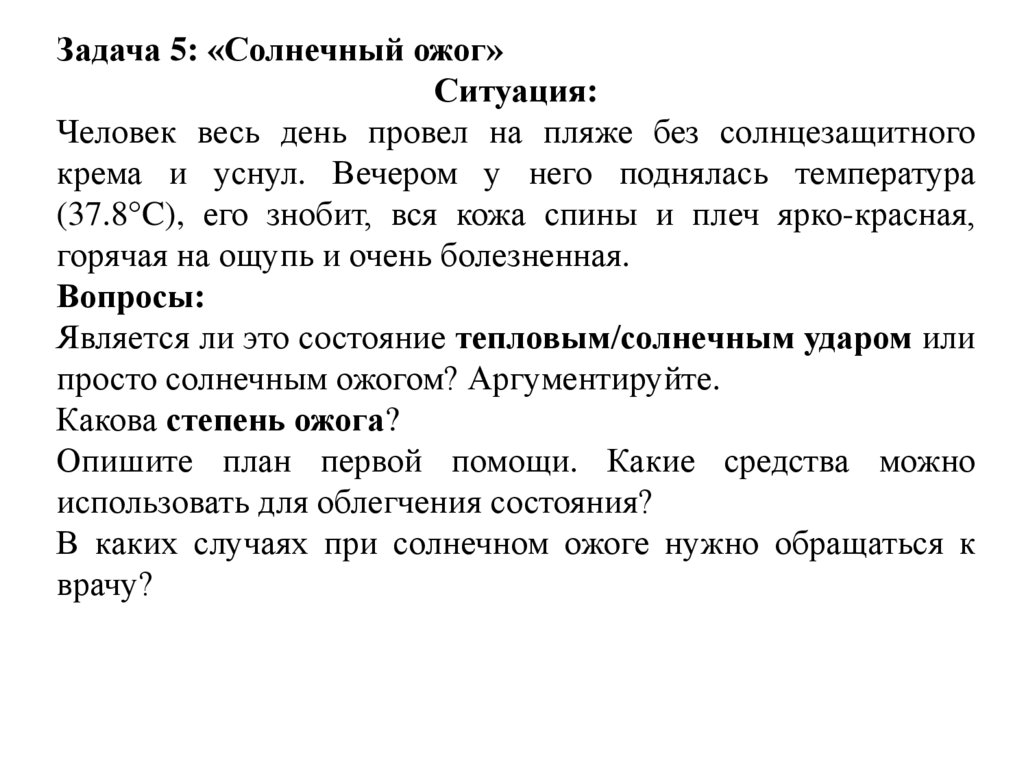 Задача 5: «Солнечный ожог»Ситуация: