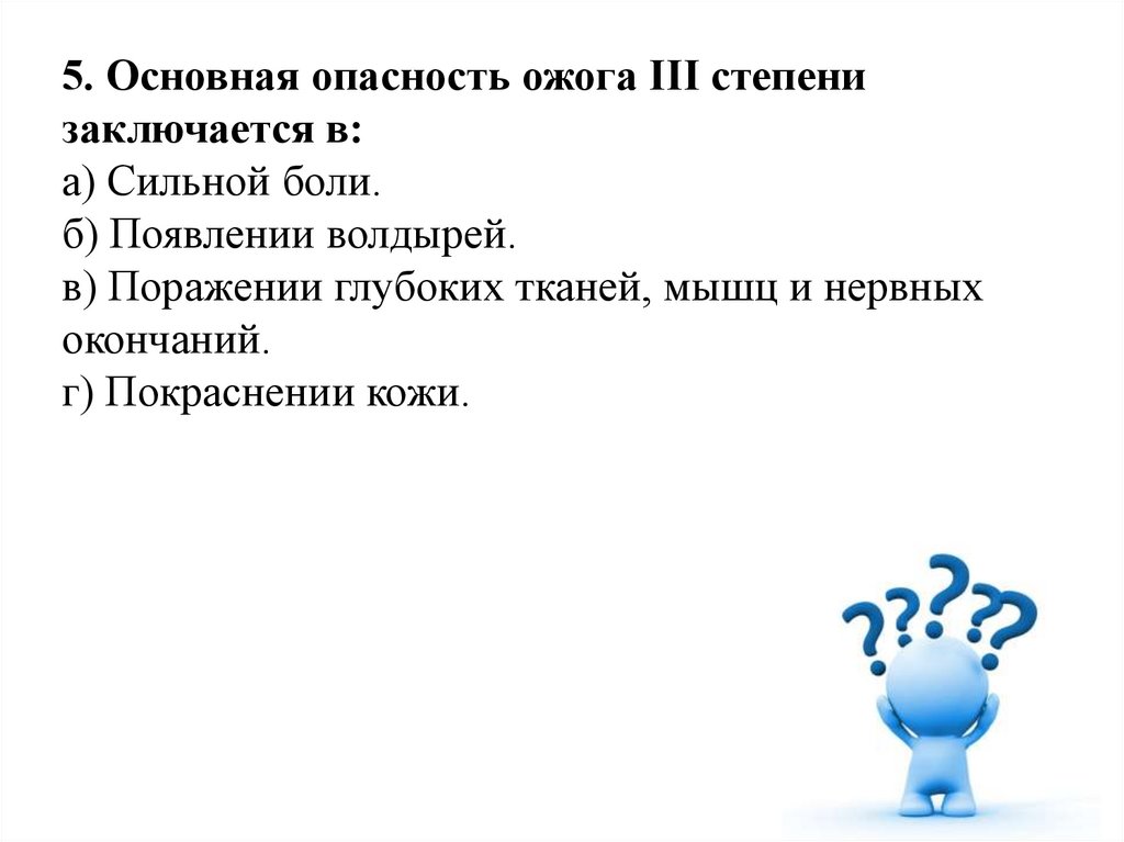 5. Основная опасность ожога III степенизаключается в: