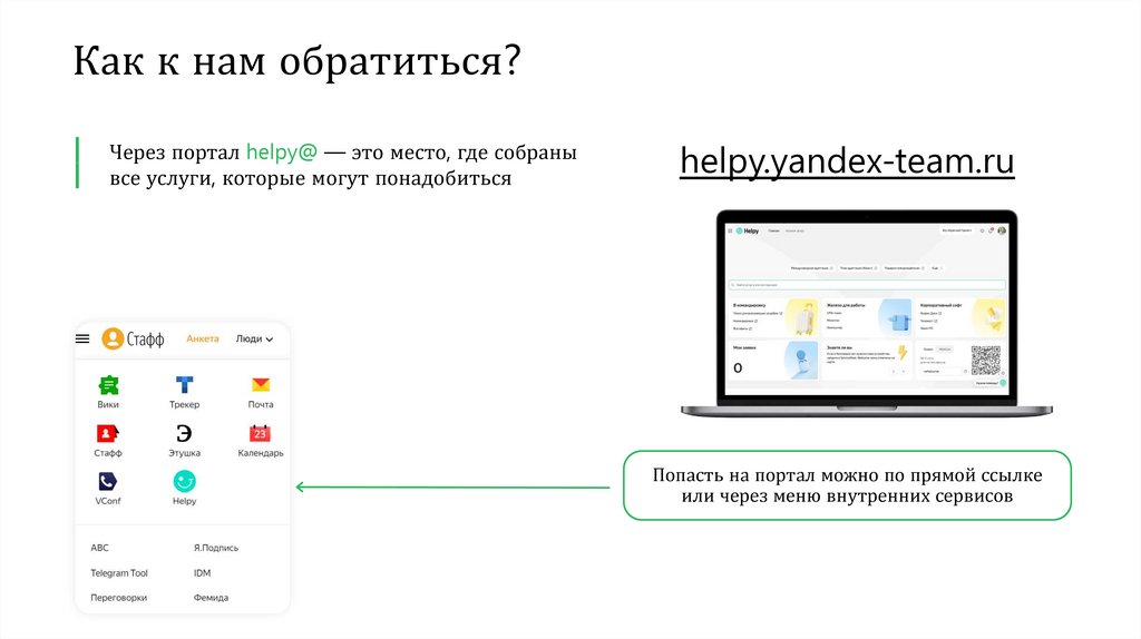 Как к нам обратиться?▎ Через портал helpy@ — это место, где собраны