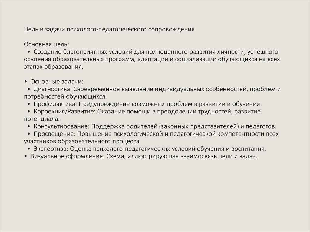 • Визуальное оформление: Схема, иллюстрирующая взаимосвязь цели и задач.