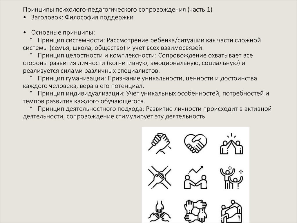 Принципы психолого-педагогического сопровождения (часть 1)• Заголовок: Философия поддержки
