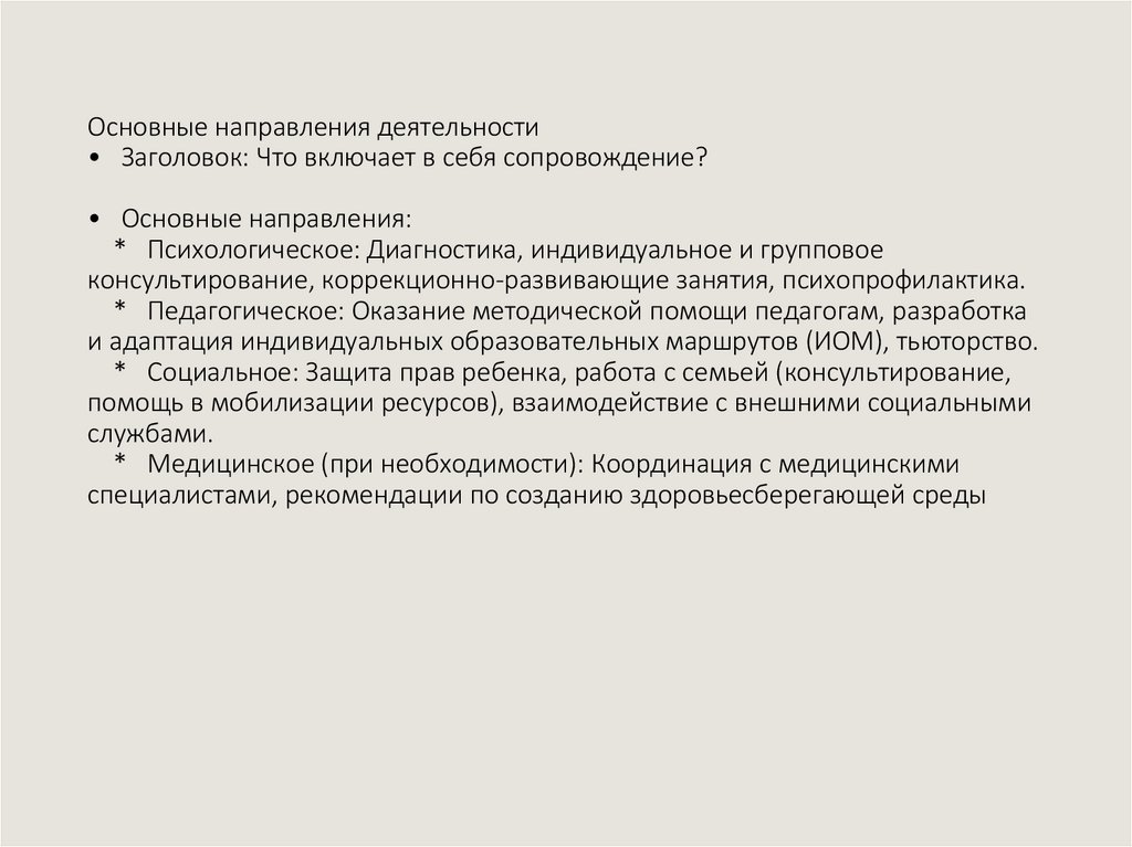 Основные направления деятельности• Заголовок: Что включает в себя сопровождение?