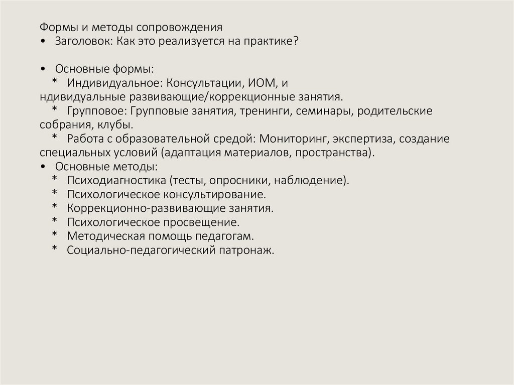 Формы и методы сопровождения• Заголовок: Как это реализуется на практике?