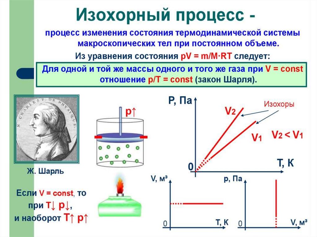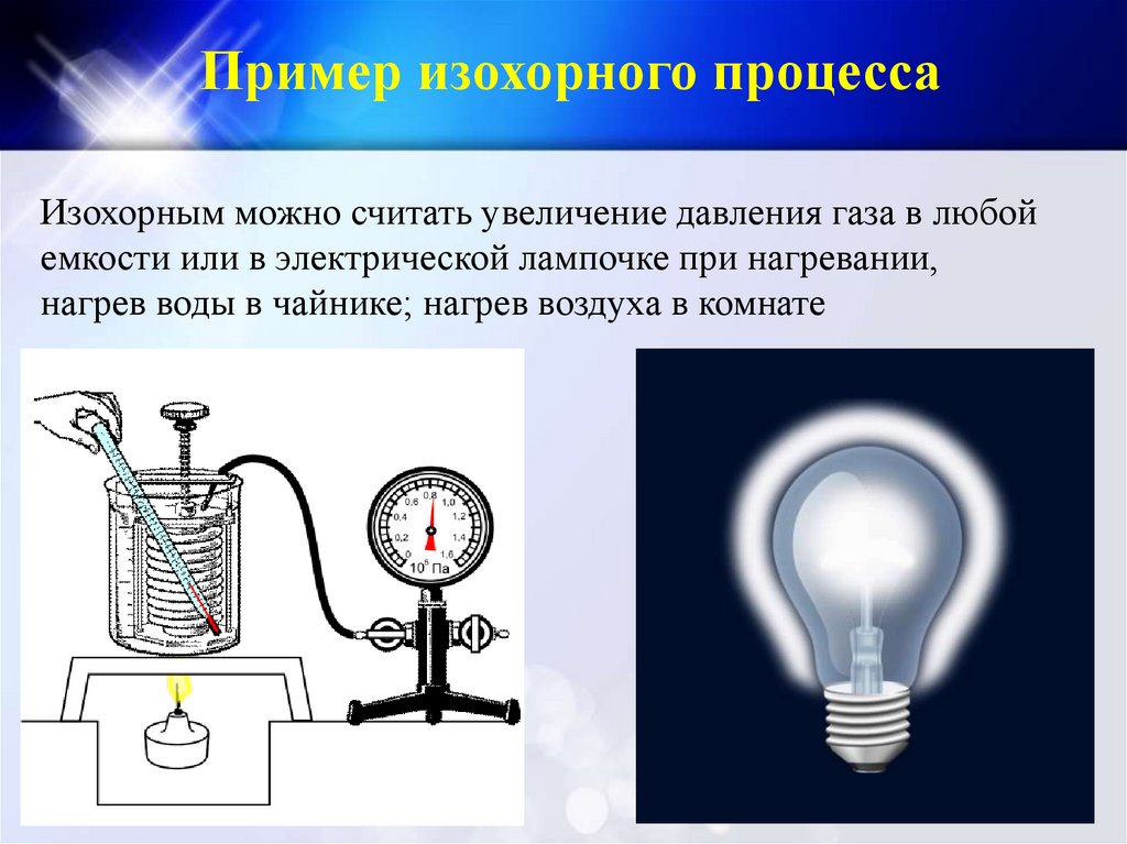 Пример изохорного процессаИзохорным можно считать увеличение давления газа в любой