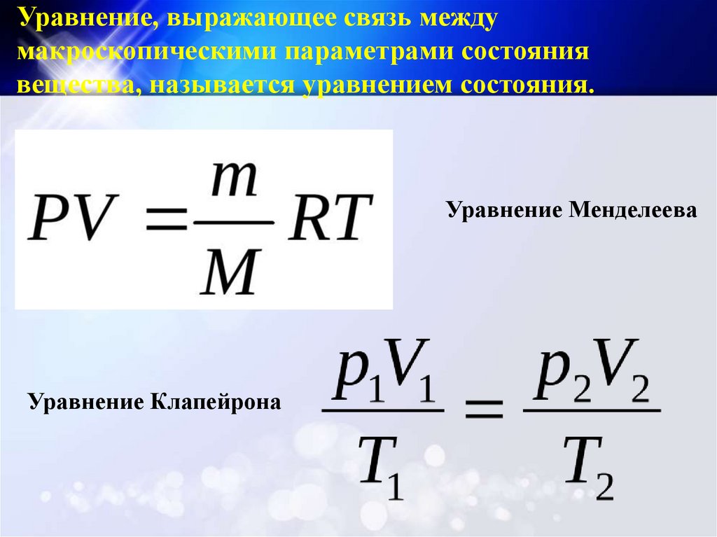 Уравнение, выражающее связь междумакроскопическими параметрами состояния