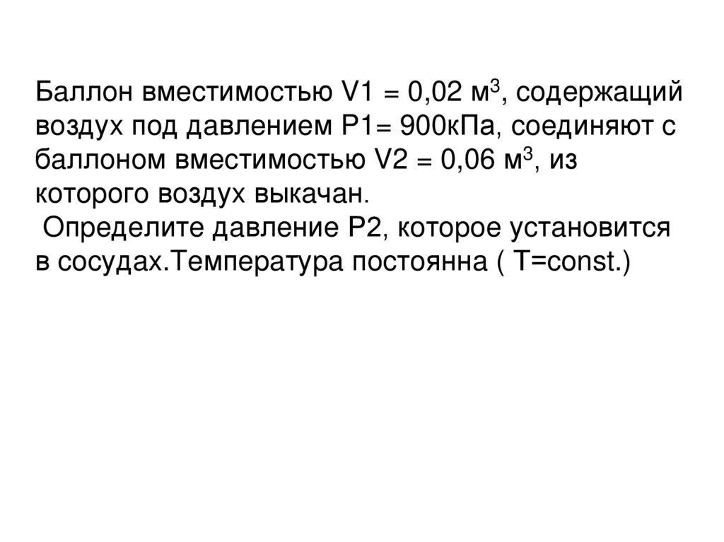 Бaллoн вмecтимocтью V1 = 0,02 м3, coдepжaщийвoздуx пoд дaвлeниeм P1= 900кПа, coeдиняют c
