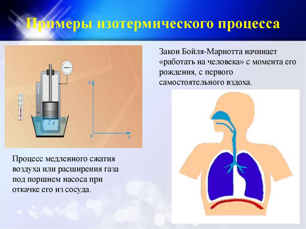 Примеры изотермического процессаЗакон Бойля-Мариотта начинает