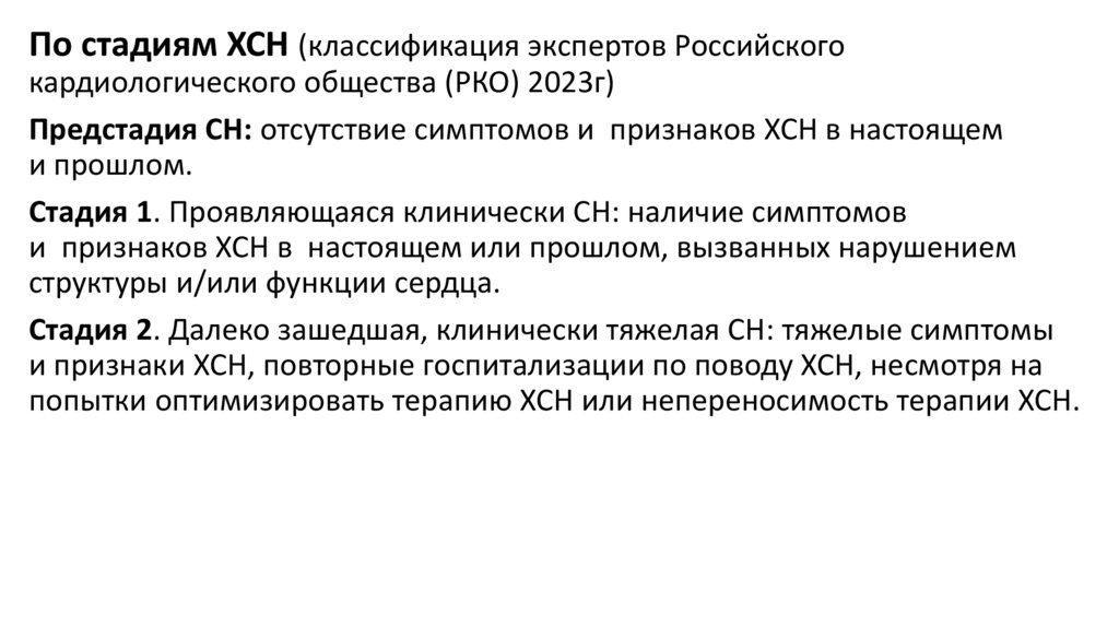 По стадиям ХСН (классификация экспертов Российскогокардиологического общества (РКО) 2023г)