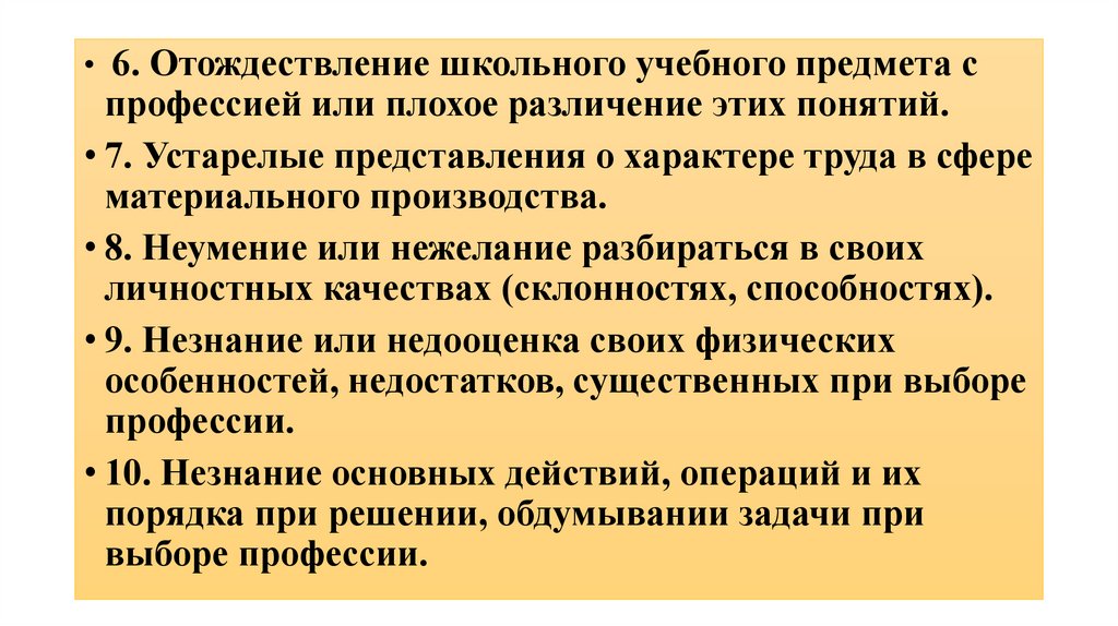 • 6. Отождествление школьного учебного предмета спрофессией или плохое различение этих понятий.