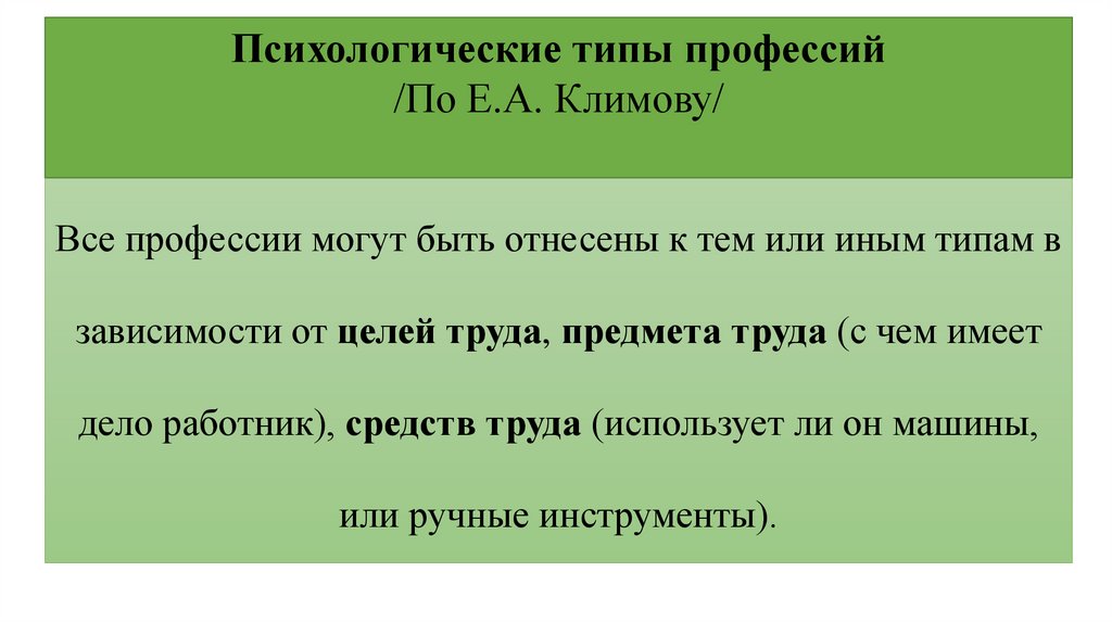 • Профессии ручного труда: фельдшер-лаборант, слесарь, картограф.• Профессии машинно-ручного труда.