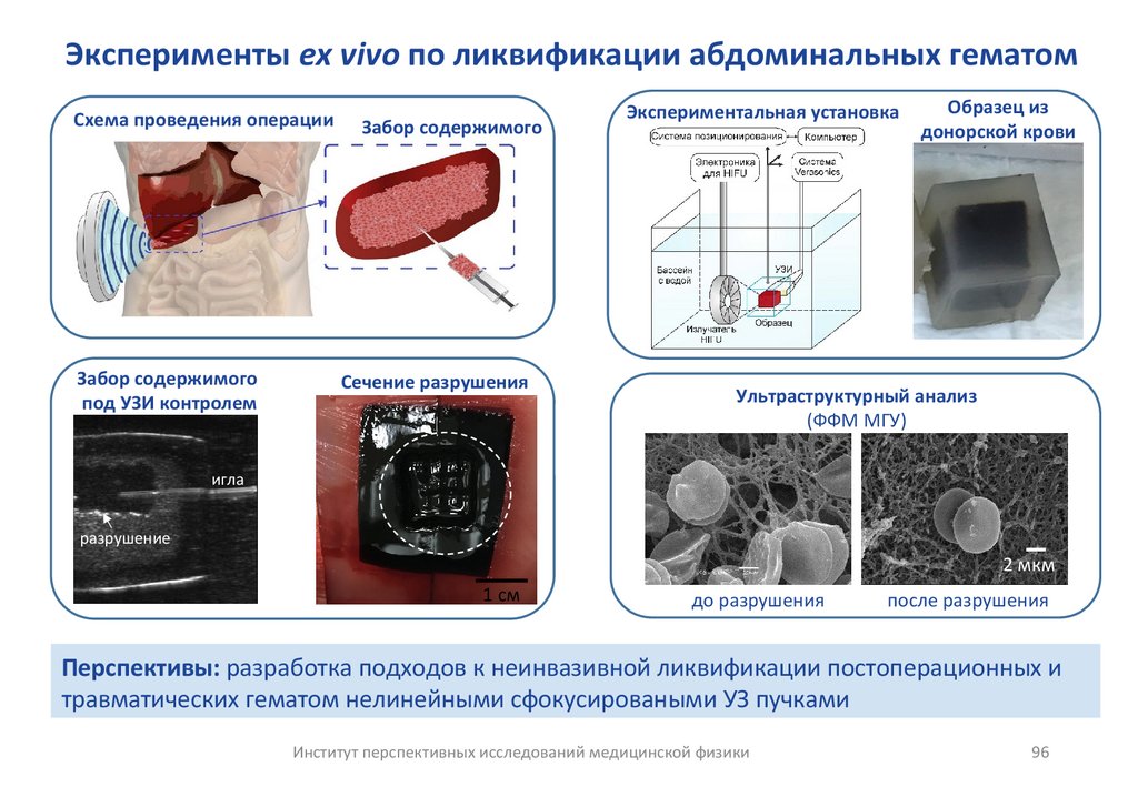 Эксперименты ex vivo по ликвификации абдоминальных гематомСхема проведения операции