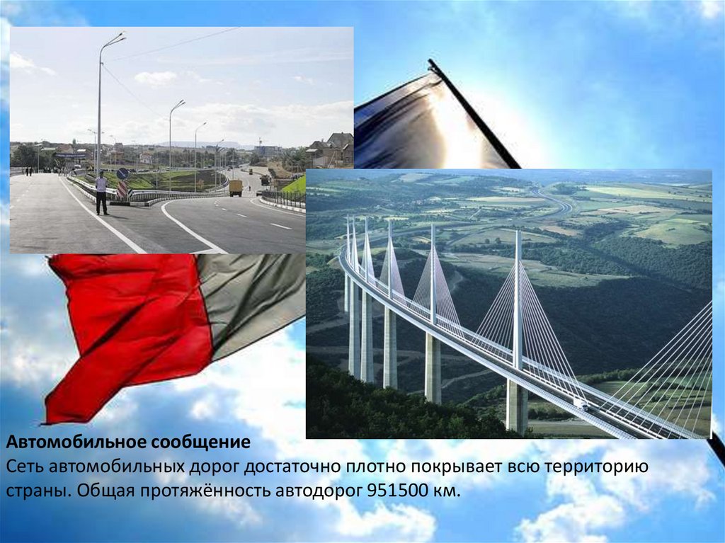 страны. Общая протяжённость автодорог 951500 км.
