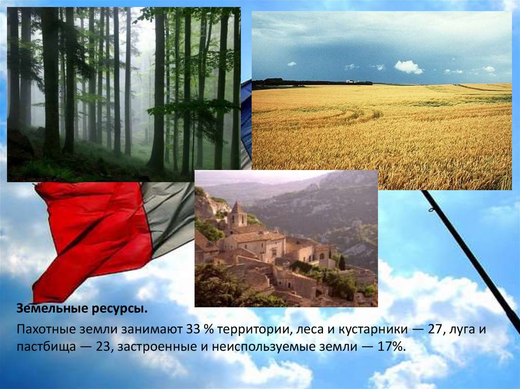 продукция Франции составляет 25 % продукции ЕС. Сельскохозяйственные угодья