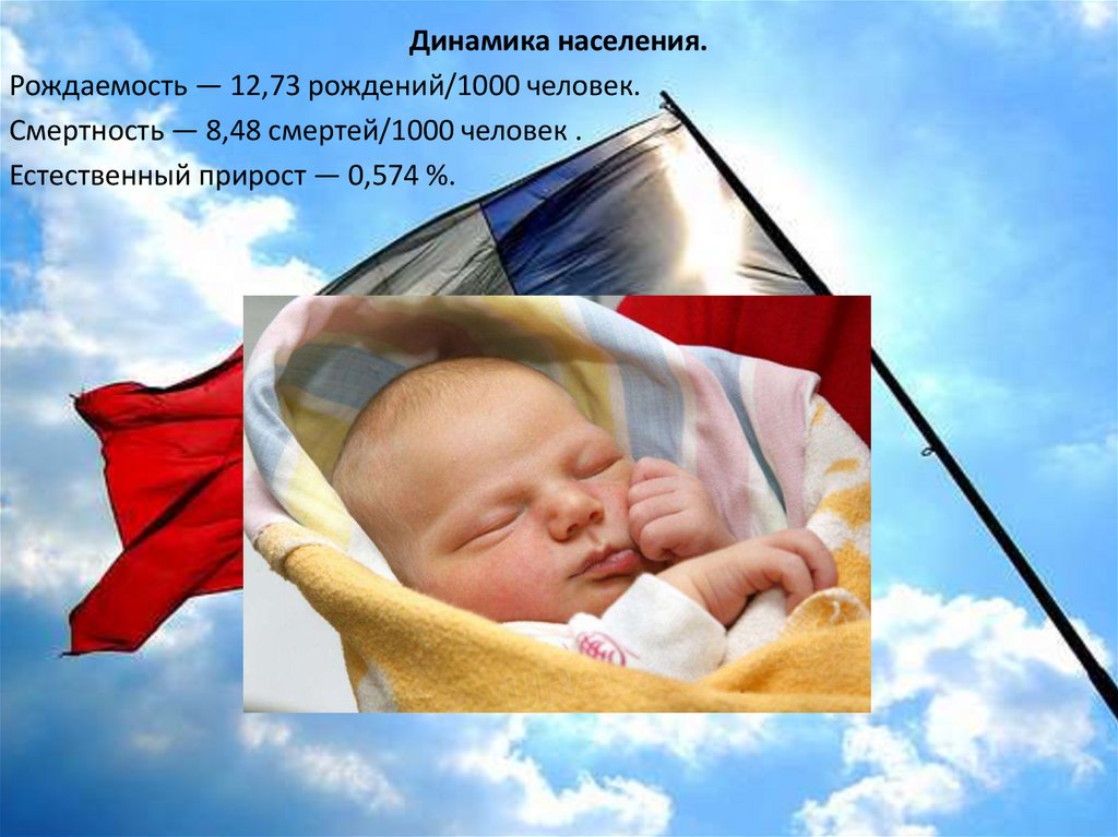 Динамика населения.Рождаемость — 12,73 рождений/1000 человек.