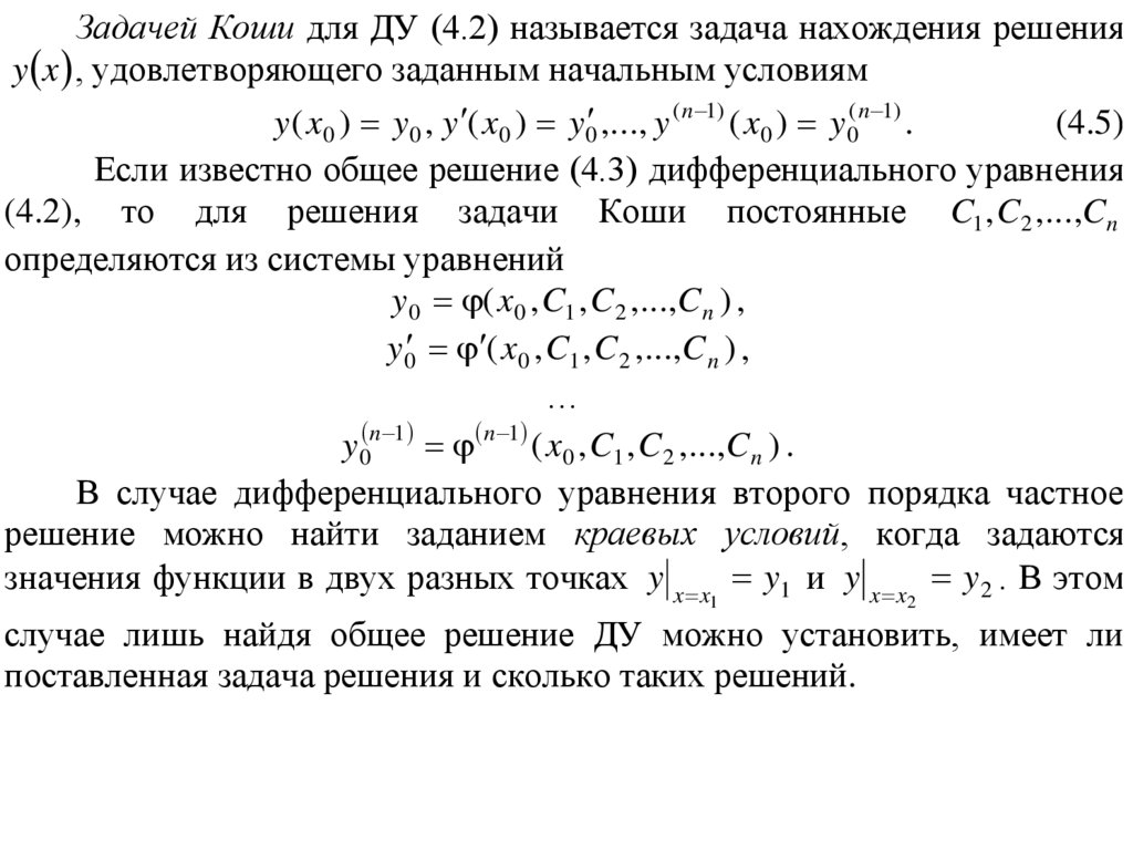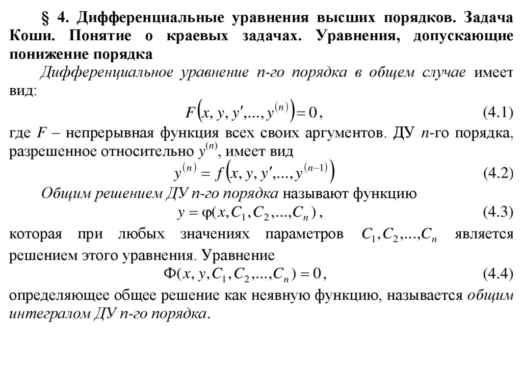 § 4. Дифференциальные уравнения высших порядков. ЗадачаКоши. Понятие о краевых задачах. Уравнения, допускающие
