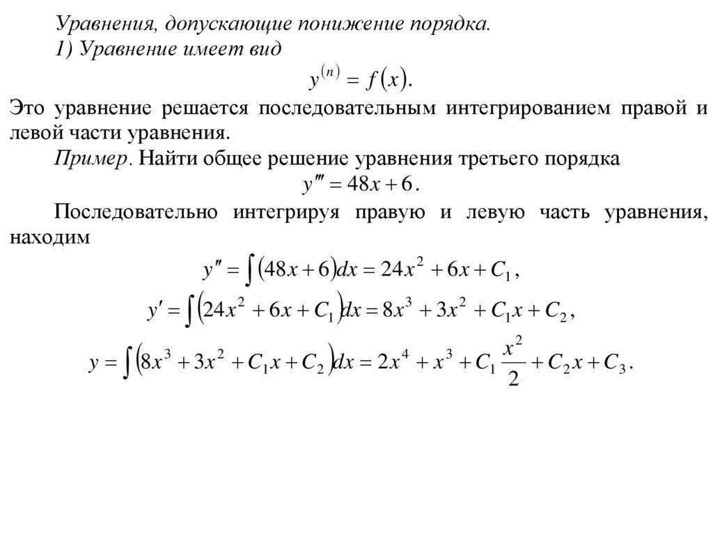 Уравнения, допускающие понижение порядка.1) Уравнение имеет вид