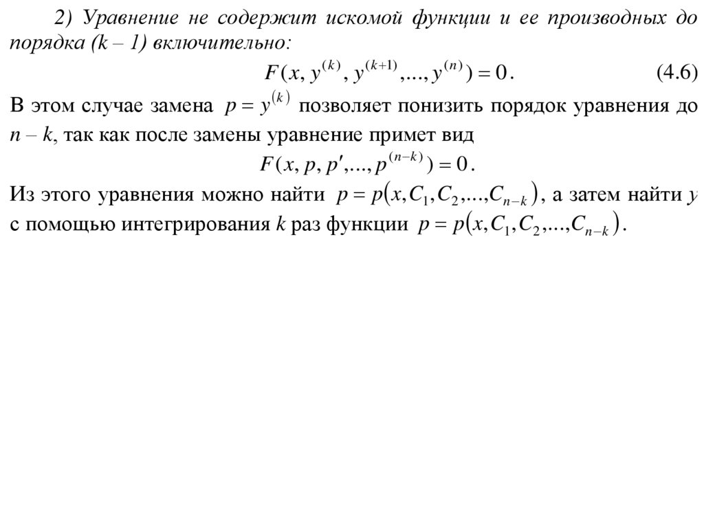 2) Уравнение не содержит искомой функции и ее производных допорядка (k – 1) включительно: