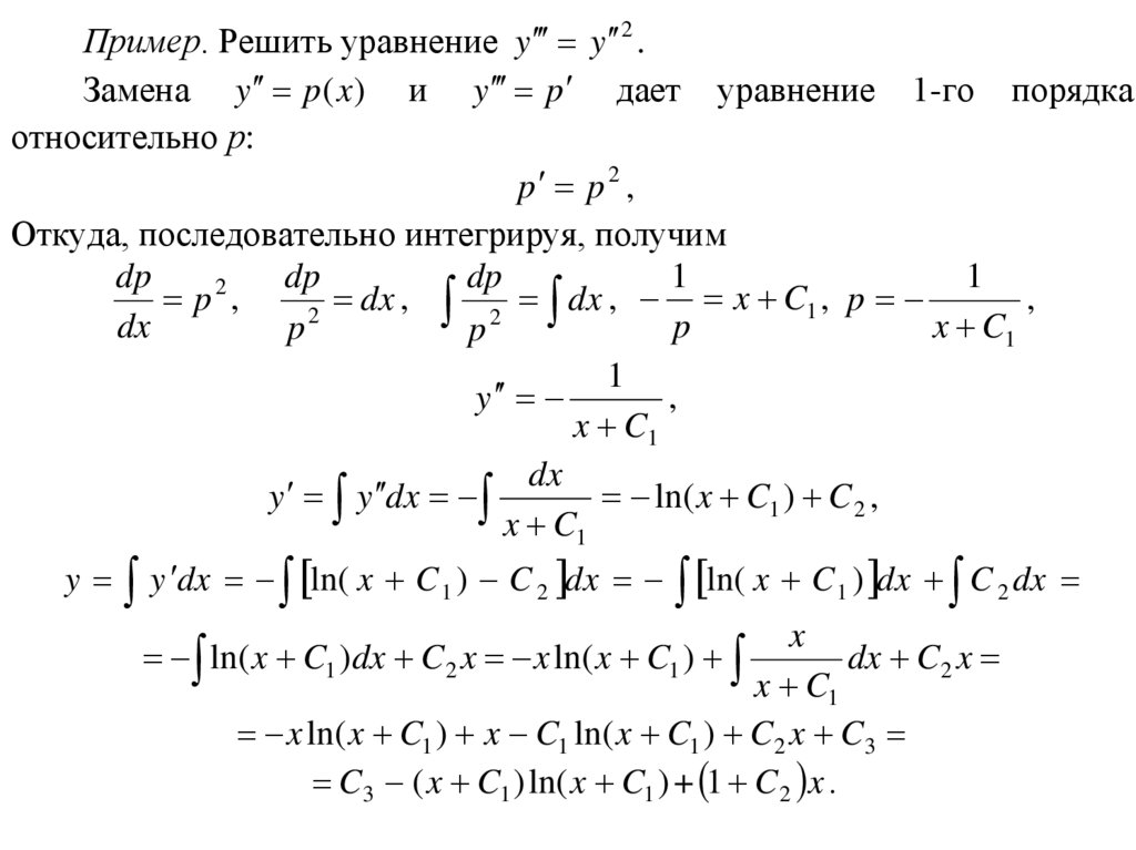 Порядок уравнения понижается на единицу заменой y p . При этом