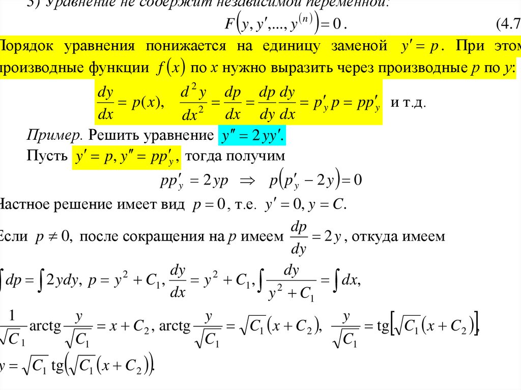 В этом случае замена p y k позволяет понизить порядок уравнения до