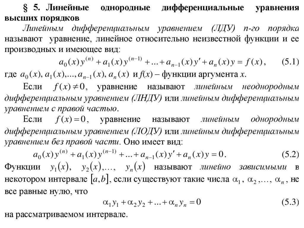 дифференциальным уравнением (ЛОДУ) или линейным дифференциальным