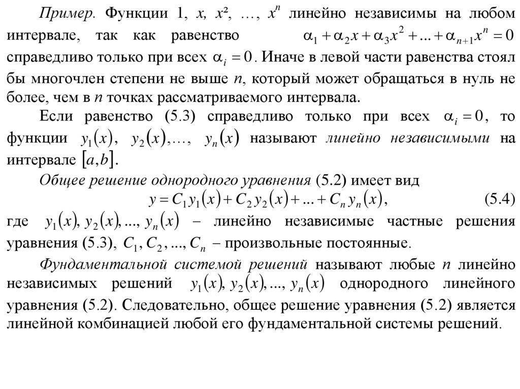 где y1 x , y 2 x , ..., y n x – линейно независимые частные решения