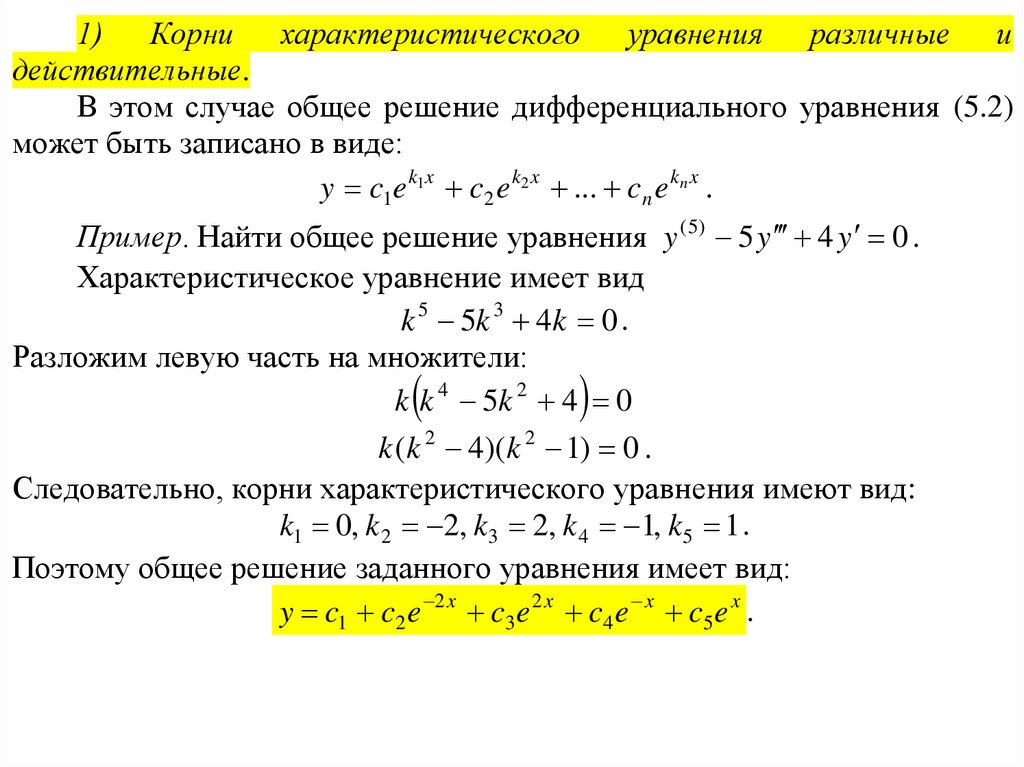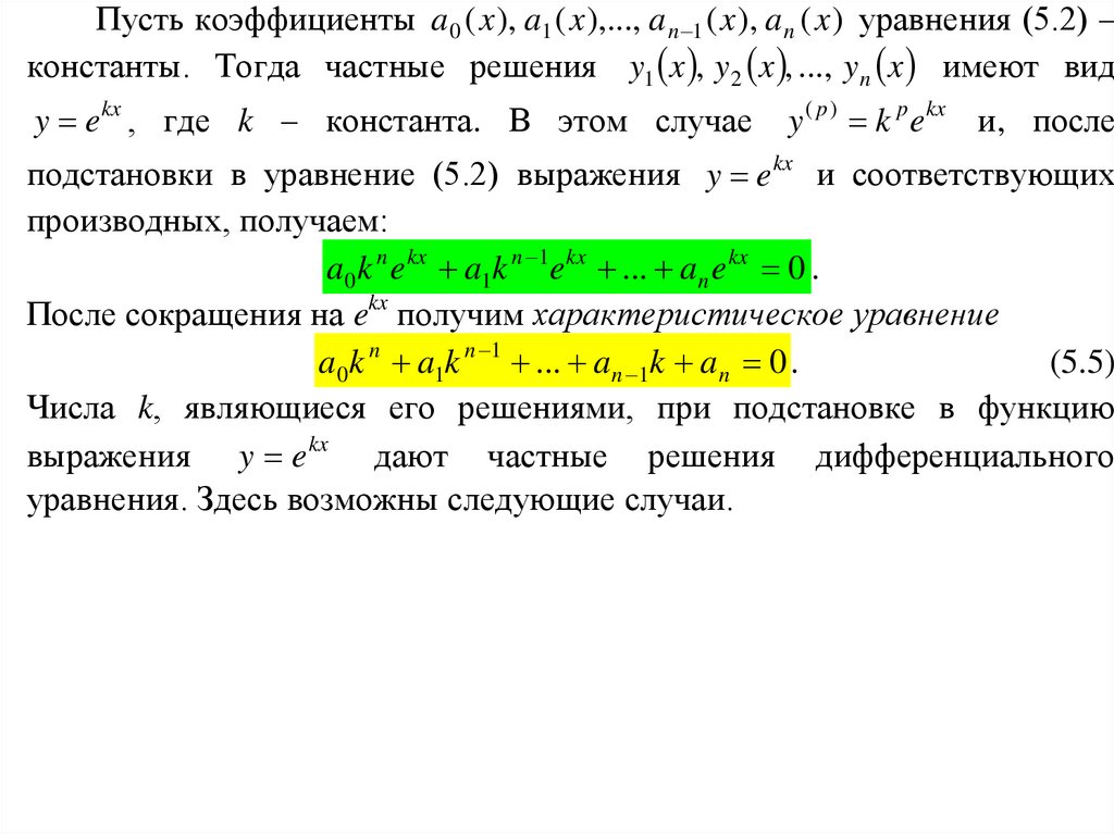 подстановки в уравнение (5.2) выражения y e kx и соответствующих
