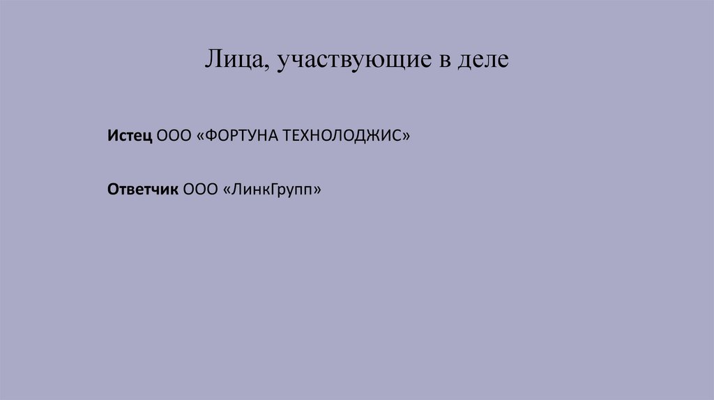 Лица, участвующие в делеИстец ООО «ФОРТУНА ТЕХНОЛОДЖИС»