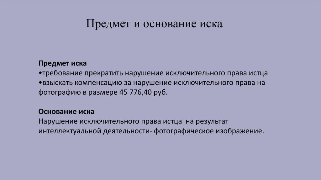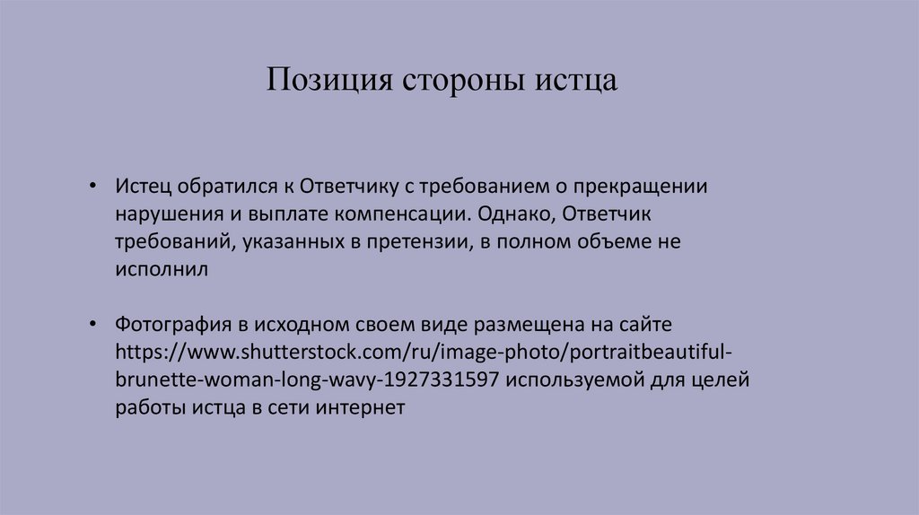 Позиция стороны истца• Истец обратился к Ответчику с требованием о прекращении