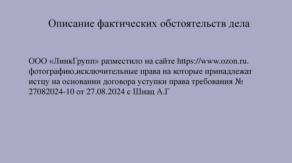 Описание фактических обстоятельств делаООО «ЛинкГрупп» разместило на сайте https://www.ozon.ru.