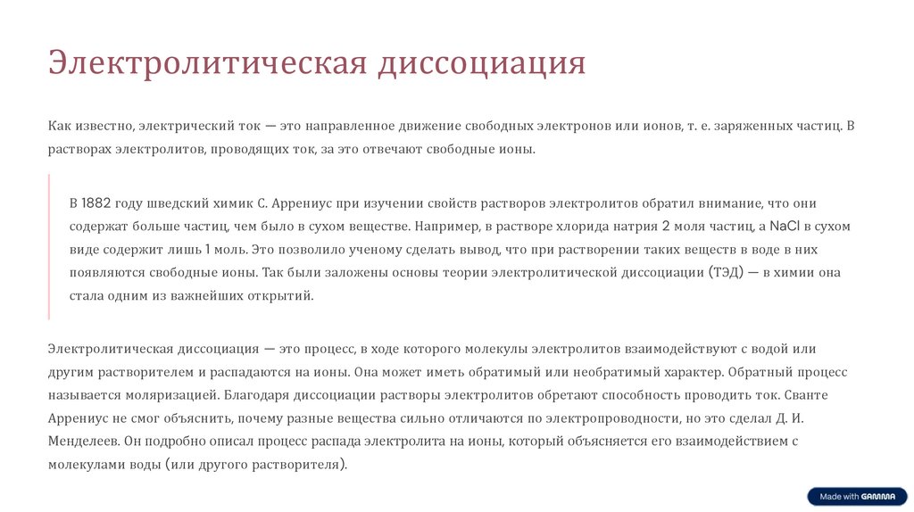 появляются свободные ионы. Так были заложены основы теории электролитической диссоциации (ТЭД) — в химии она