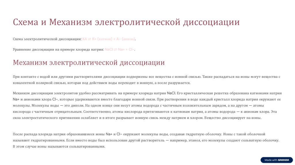 Механизм электролитической диссоциации