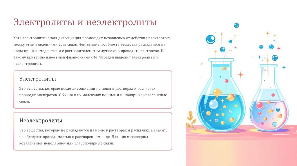 Электролиты и неэлектролитыХотя электролитическая диссоциация происходит независимо от действия электротока,